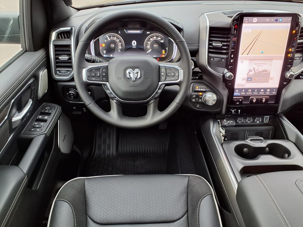 Quick Order Package 27H Laramie. Laramie Level 2 Equipment Group: SiriusXM Radio Service; USB Host Flip; Rain Sensitive Windshield Wipers; 14.4 Touchscreen Display; Integrated Center Stack Radio; Front Passenger Interactive Display; Integrated Voice Command with Bluetooth; Connectivity - US/Canada; Uconnect 5 Nav with 14.4 Display; GPS Navigation; 4G LTE Wi-Fi Hot Spot; Harman/kardon 19 Speaker Premium Sound; SiriusXM with 360L; Connected Travel and Traffic Services; Cluster 12 TFT Color Display; Power Tailgate. Laramie Preferred Package: Accent Color Premium Power Mirrors; Exterior Mirrors with Supplemental Signals; Power Deployable Running Boards; Exterior Mirrors Courtesy Lamps; RAM Grille Badge - Chrome; Auto Power-Folding Mirrors; Grille Surround 3 Body Color Tex 4 Chrome; Exterior Mirrors with Heating Element; Auto Dim Exterior Driver Mirror; Trailer Brake Control; Exterior Mirrors with Memory; Tow Hooks; Body Color Front Bumper; Convex Wide-Angle Exterior Mirror Insert; Dual-Pane Panoramic Sunroof; Body Color Rear Bumper with Step Pads; Black Painted Exterior Mirrors Caps. Dual-Pane Panoramic Sunroof. Power Deployable Running Boards. Trailer Brake Control. Diamond Black Crystal PC. MOPAR Front and Rear Rubber Floor Mats. 3.92 Rear Axle Ratio. **Equipment listed is based on original vehicle build and subject to change. Please confirm the accuracy of the included equipment by calling the dealer prior to purchase.**