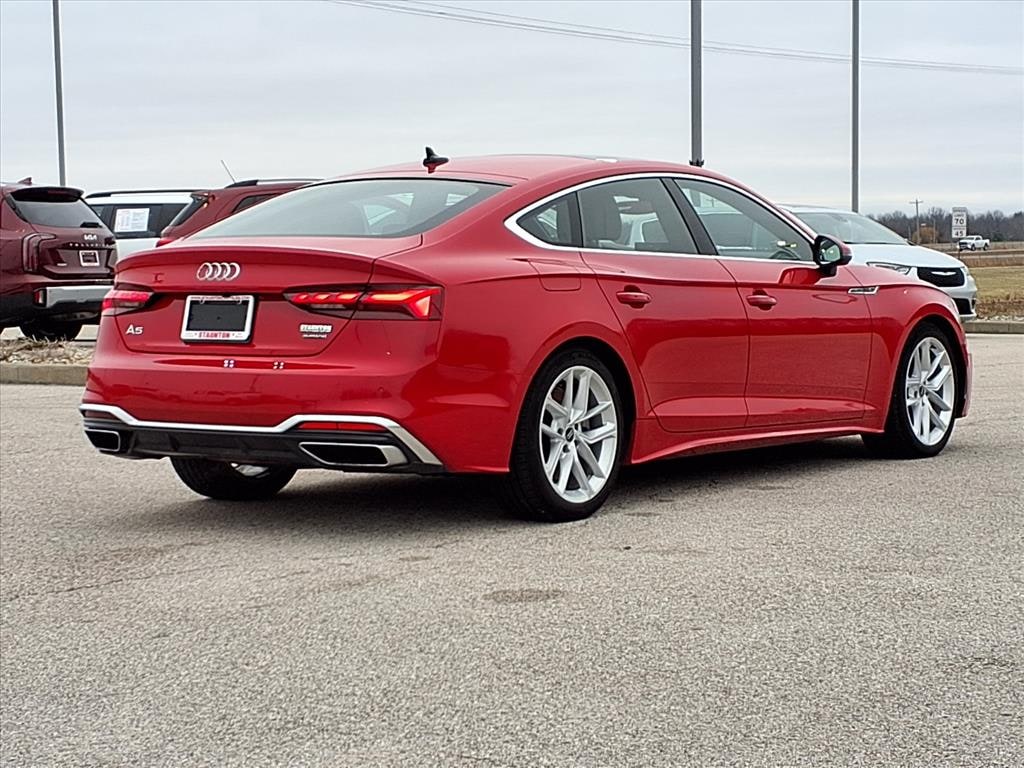 This small car has a clean CARFAX vehicle history report. Good News! This certified CARFAX 1-owner vehicle has only had one owner before you. Protect this vehicle from unwanted accidents with a cutting edge backup camera system. The leather seats in this model are a must for buyers looking for comfort, durability, and style. This unit offers Automatic Climate Control for personalized comfort. Never get into a cold vehicle again with the remote start feature on the vehicle. Keep your hands warm all winter with a heated steering wheel in this Audi A5 Sportback . This small car offers Apple CarPlay for seamless connectivity. The state of the art park assist system will guide you easily into any spot. Bluetooth technology is built into this small car, keeping your hands on the steering wheel and your focus on the road. This model is equipped with all wheel drive. The Audi A5 Sportback excites both driver and bystanders with a polished red exterior with racy lines.