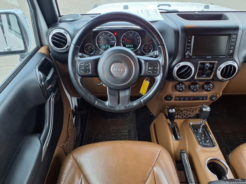 The leather seats in the vehicle are a must for buyers looking for comfort, durability, and style. This 2015 Jeep Wrangler offers Automatic Climate Control for personalized comfort. Bluetooth technology is built into the vehicle, keeping your hands on the steering wheel and your focus on the road. Start this 2015 Jeep Wrangler from inside with remote start. The installed navigation system will keep you on the right path. This unit has a V6, 3.6L high output engine. This unit has four wheel drive capabilities. This Jeep Wrangler embodies class and sophistication with its refined white exterior. Set the temperature exactly where you are most comfortable in the vehicle. The fan speed and temperature will automatically adjust to maintain your preferred zone climate. Enjoy the tried and true gasoline engine in this 2015 Jeep Wrangler . The high efficiency automatic transmission shifts smoothly and allows you to relax while driving.