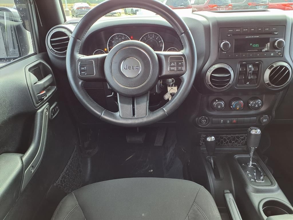 When you encounter slick or muddy roads, you can engage the four wheel drive on this 2016 Jeep Wrangler and drive with confidence. The vehicle has a V6, 3.6L high output engine. With the keyless entry system on this mid-size suv you can pop the trunk without dropping your bags from the store. This model is painted with a sleek and sophisticated black color. Maintaining a stable interior temperature in the vehicle is easy with the climate control system. The Electronic Stability Control will keep you on your intended path. This Jeep Wrangler features cruise control for long trips. Enjoy the tried and true gasoline engine in this model. This Jeep Wrangler has heated side mirrors to keep your vision clear in winter weather. The Jeep Wrangler has an automatic transmission. Anti-lock brakes are standard on the vehicle. This Jeep Wrangler has fog lights for all weather conditions. The spacious cabin accommodates your family and friends in comfort. Take it to the mountains or the beach. this Jeep Wrangler can handle it all.