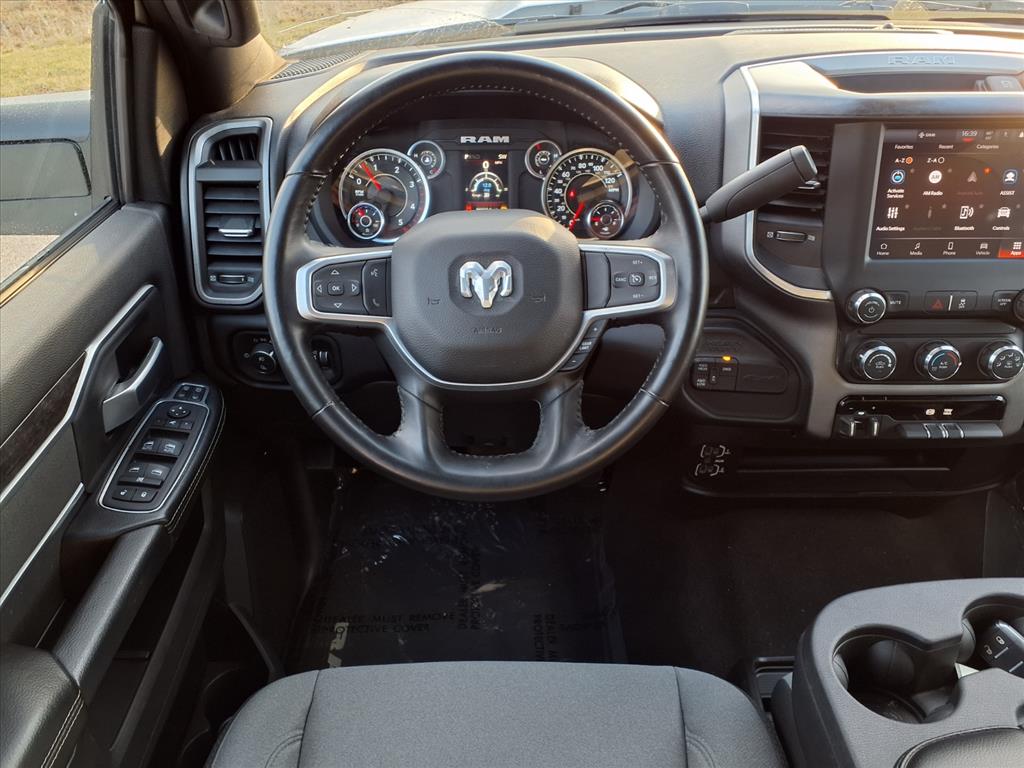 Quick Order Package 2HZ Big Horn. Level 1 Equipment Group: Leather Wrapped Steering Wheel; Rear Dome with On/off Switch Lamp; Front Fog Lamps; Premium Cloth 40/20/40 Bench Seat; Glove Box Lamp; Auto Power-Folding Mirrors; Footwell Courtesy Lamp; Exterior Mirrors with Heating Element; Mirror Running Lights; Uconnect 5 with 8.4 Display Radio; Foam Bottle Insert (door Trim Panel); Black Exterior Mirrors; Big Horn Instrument Panel Badge; Power-Adjustable Convex Aux Mirrors; Forward and Reverse Utility Lights; Locking Lower Glove Box; Power Heated Fold Telescopic Mirrors; Exterior Mirrors with Supplemental Signals; Steering Wheel Mounted Audio Controls; Exterior Mirrors Courtesy Lamps; Dual Glove Boxes; Center Hub; Power Adjust Mirrors; 2nd Row in Floor Storage Bins; Power Telescoping Mirrors. Dual Rear Wheels: Bright Wheel Skins; Clearance Lamps; LT235/80R17E BSW AS Tires; 17 Steel Spare Wheel; Box and Rear Fender Clearance Lamps; Center Hub; 17 X 6.0 Steel Chrome Clad Wheels; 6000# Front Axle with Hub Extension; 14. 000 lbs GVWR; Rear Wheelhouse Liners. Quick Order Package 2GZ Big Horn. Premium Cloth 40/20/40 Bench Seat. Uconnect 5 with 8.4 Display Radio. Chrome Flat Cab-Length Side Steps. MOPAR Spray in Bedliner. 5th Wheel/gooseneck Towing Prep Group. Front Fog Lamps. Rear Wheelhouse Liners. Clearance Lamps. Power 2-Way Driver Lumbar Adjust. **Equipment listed is based on original vehicle build and subject to change. Please confirm the accuracy of the included equipment by calling the dealer prior to purchase.**